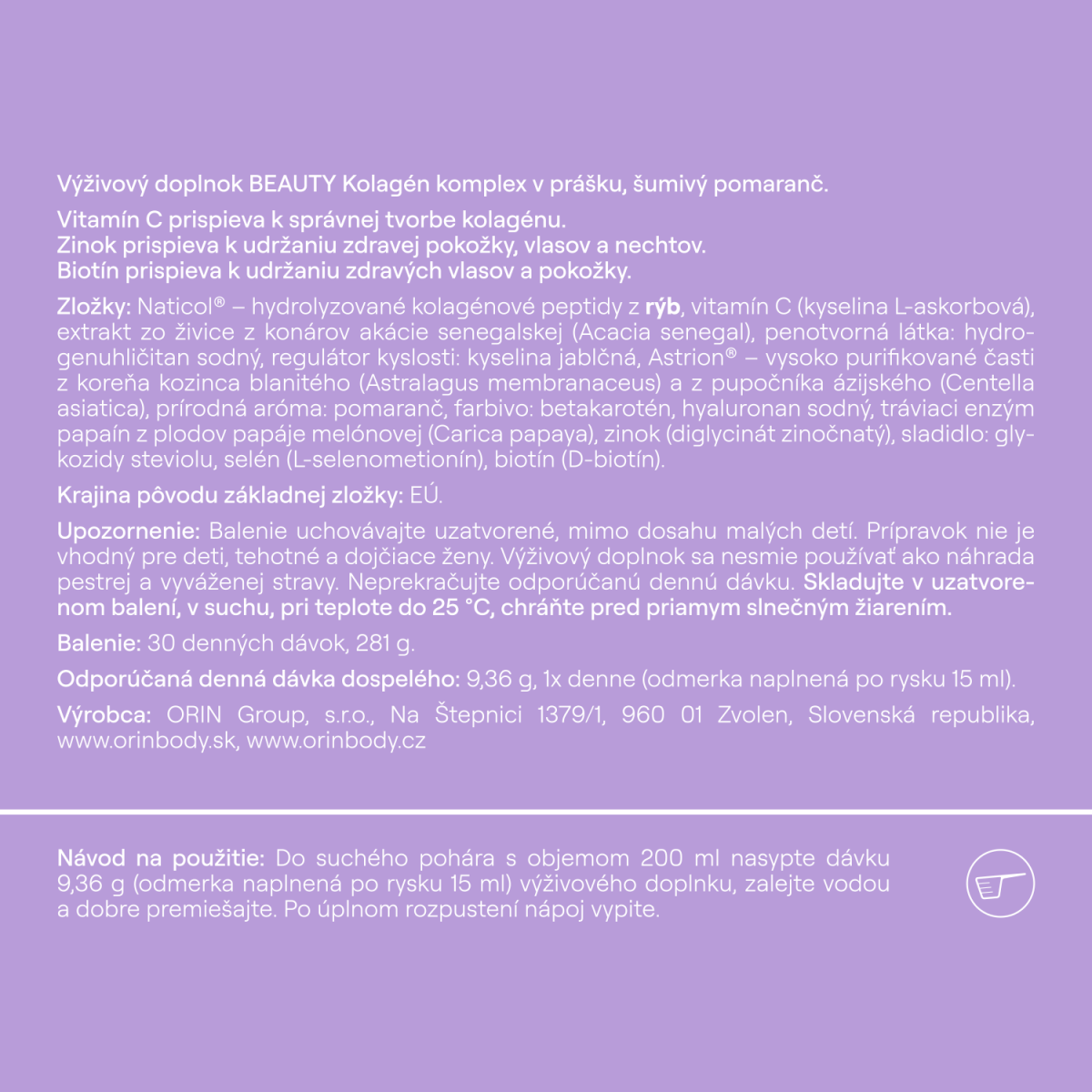 ORIN BEAUTY Kolagén pre vlasy, nechty a pleť - šumivý pomaranč 37,00 € s DPH