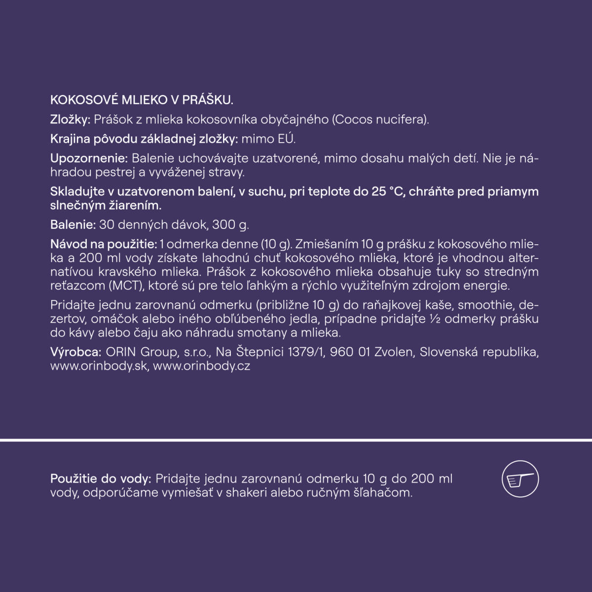 ORIN Kokosové mlieko v prášku môžeš mať vždy v zásobe a pripraviť si ho len toľko, koľko naozaj potrebuješ.